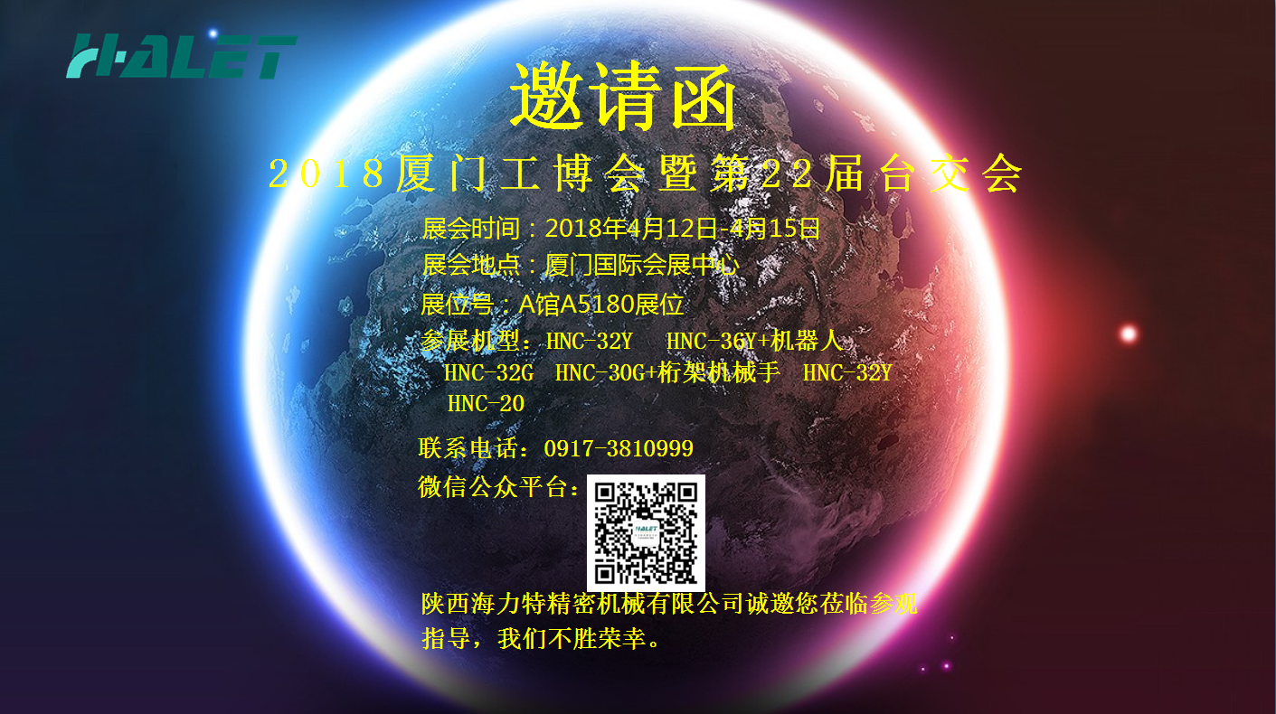 2018廈門(mén)工博會(huì)暨第二十二屆臺(tái)交會(huì)4月12日——4月15日將在廈門(mén)國(guó)際會(huì)展中心隆重召開(kāi)。此次展會(huì)陜西海力特精密機(jī)械有限公司將攜HNC-32Y,HNC-36Y精密車(chē)銑復(fù)合機(jī)床,HNC-32G,HNC-20,HNC-30G精密排刀車(chē)床,HNC-500Z桁架機(jī)械手參加此次盛會(huì)。海力特公司誠(chéng)邀各界新老朋友蒞臨展位參觀(guān)指導(dǎo),洽談合作,共創(chuàng)美好未來(lái)。