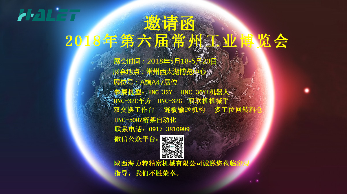 第六屆常州工業(yè)博覽會5月18日——5月20日在常州西太湖博覽中心隆重召開。此次展會陜西海力特精密機(jī)械有限公司將攜HNC-32Y,HNC-36Y精密車銑復(fù)合機(jī)床,HNC-32G HNC-32C車方 雙聯(lián)自動化機(jī)床,HNC-500Z桁架機(jī)械手,部分自動化單元參加此次行業(yè)盛會。海力特公司誠邀各界新老朋友蒞臨展位參觀指導(dǎo),洽談合作,共創(chuàng)美好未來。